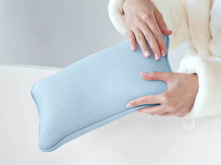 Unser kompaktes Badekissen besteht aus einem hautfreundlichen Material, das sich weich anfühlt und nicht kratzt. Die atmungsaktive Struktur verhindert unangenehme Gerüche und hält das Kissen hygienisch.
