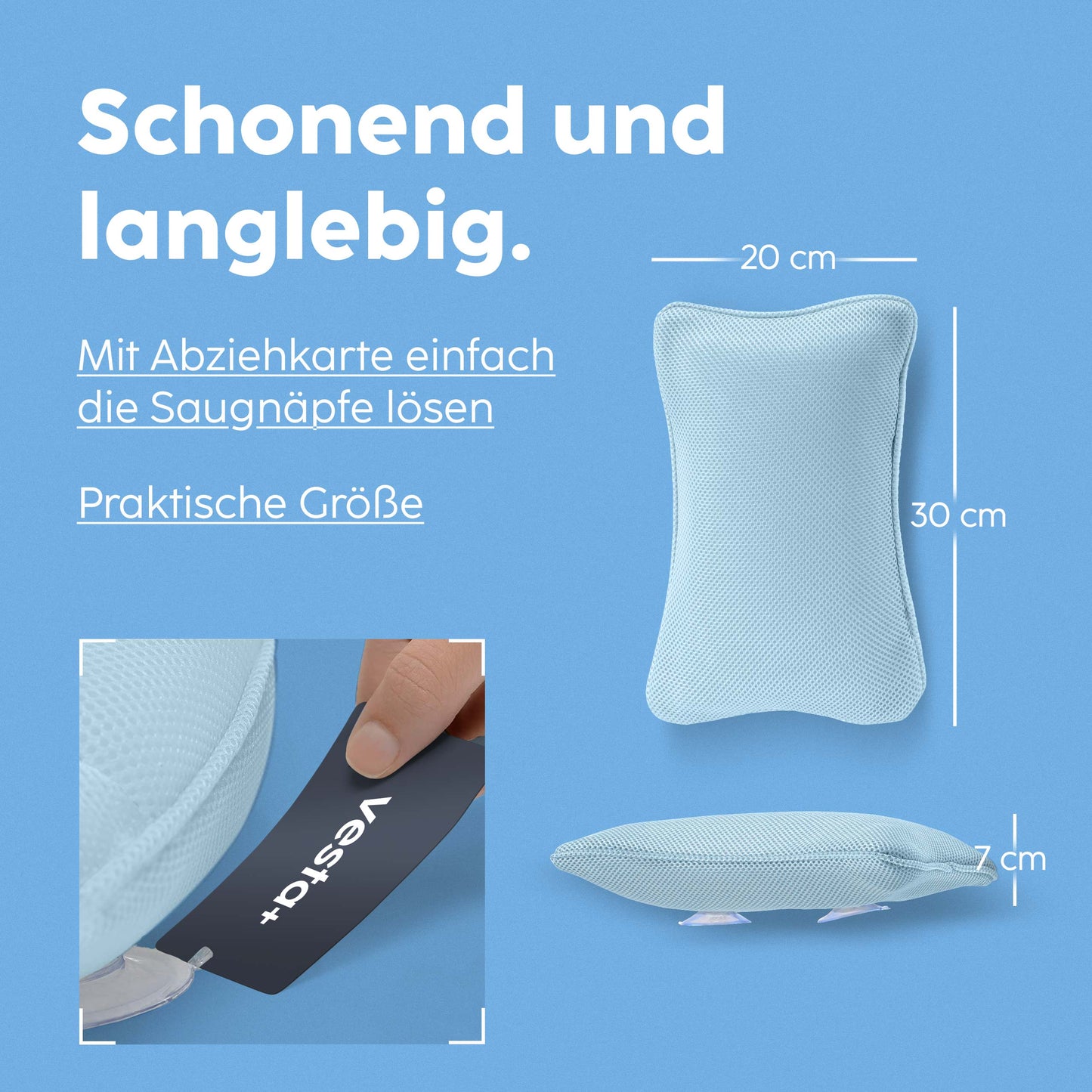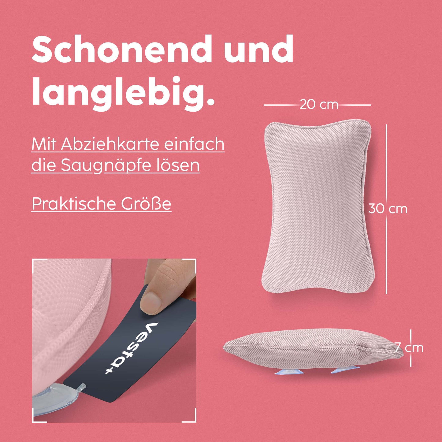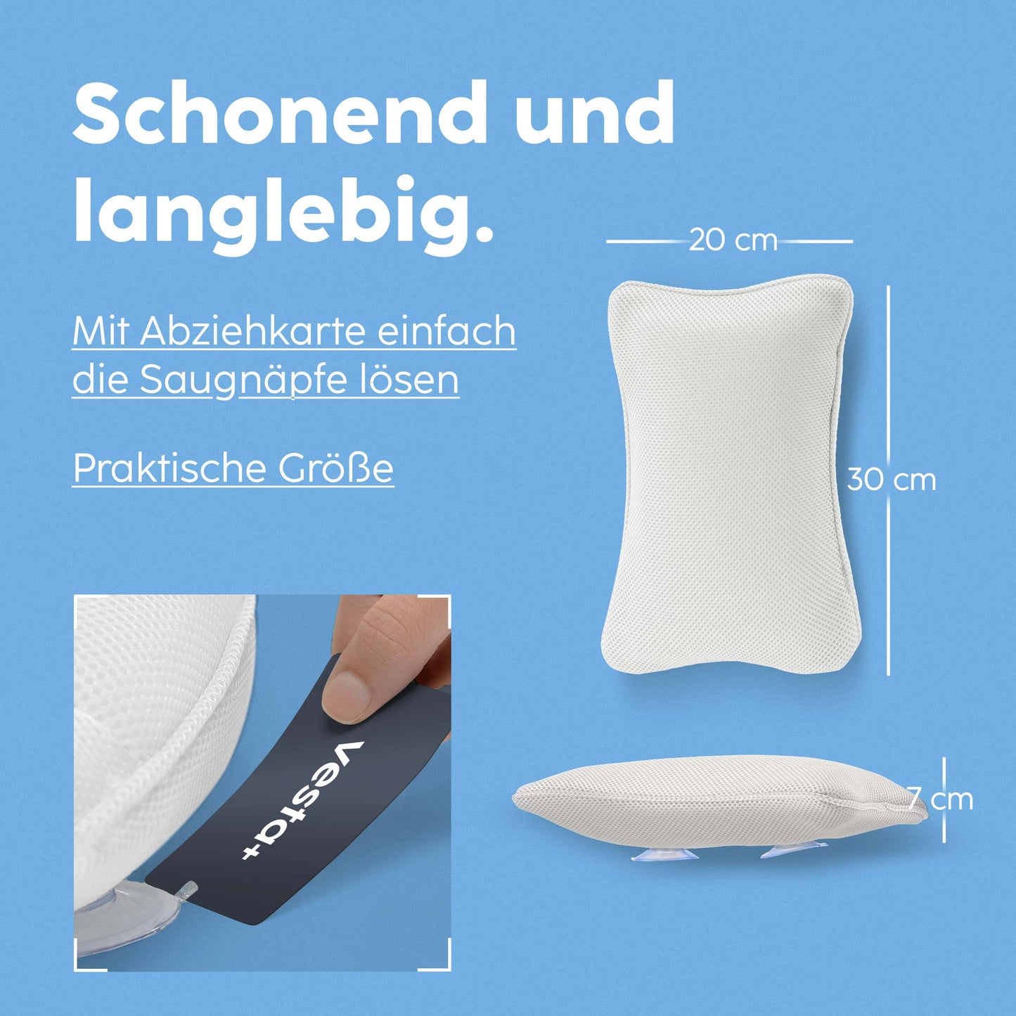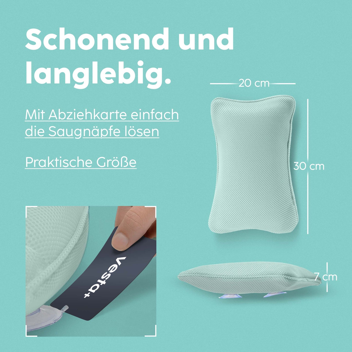 Das kleine Badewannenkissen von vesta+ ist die ideale Lösung für alle, die auch in kleineren Bädern nicht auf Komfort verzichten möchten. Dank seines kompakten Designs nimmt es kaum Platz ein und bietet dennoch eine angenehme Nackenstütze beim Baden. Das kleine Badekissen lässt sich leicht positionieren und sorgt für maximale Entspannung – selbst in schmaleren Wannen.