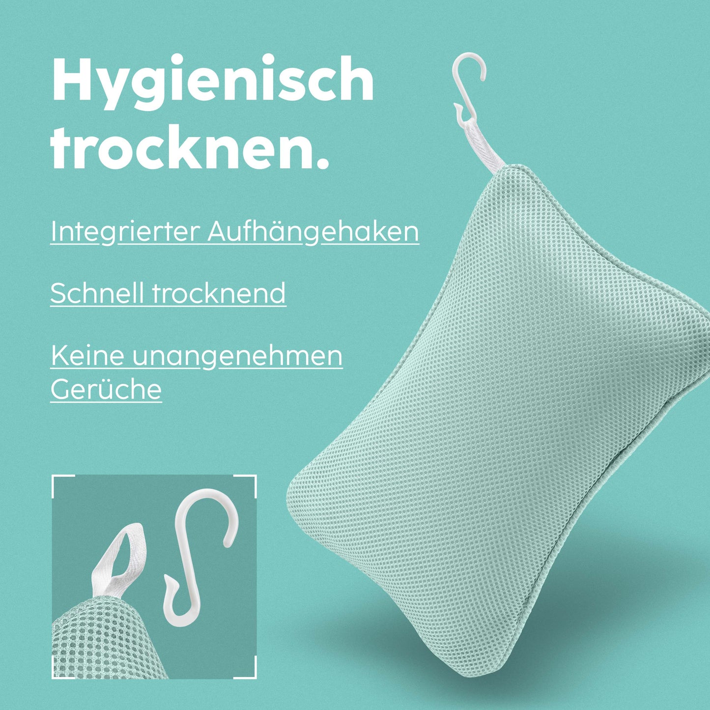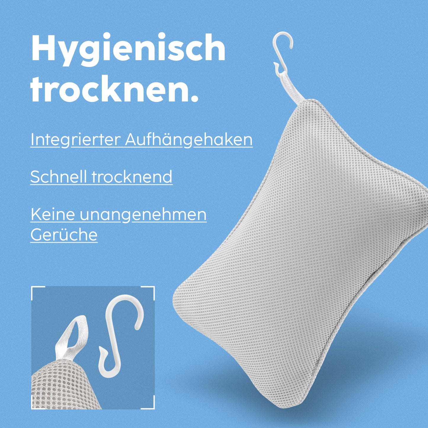 Ausgestattet mit einem praktischen Aufhängehaken, trocknet das kleine Badewannenkissen schnell und bleibt stets frisch – ideal für den regelmäßigen Einsatz.