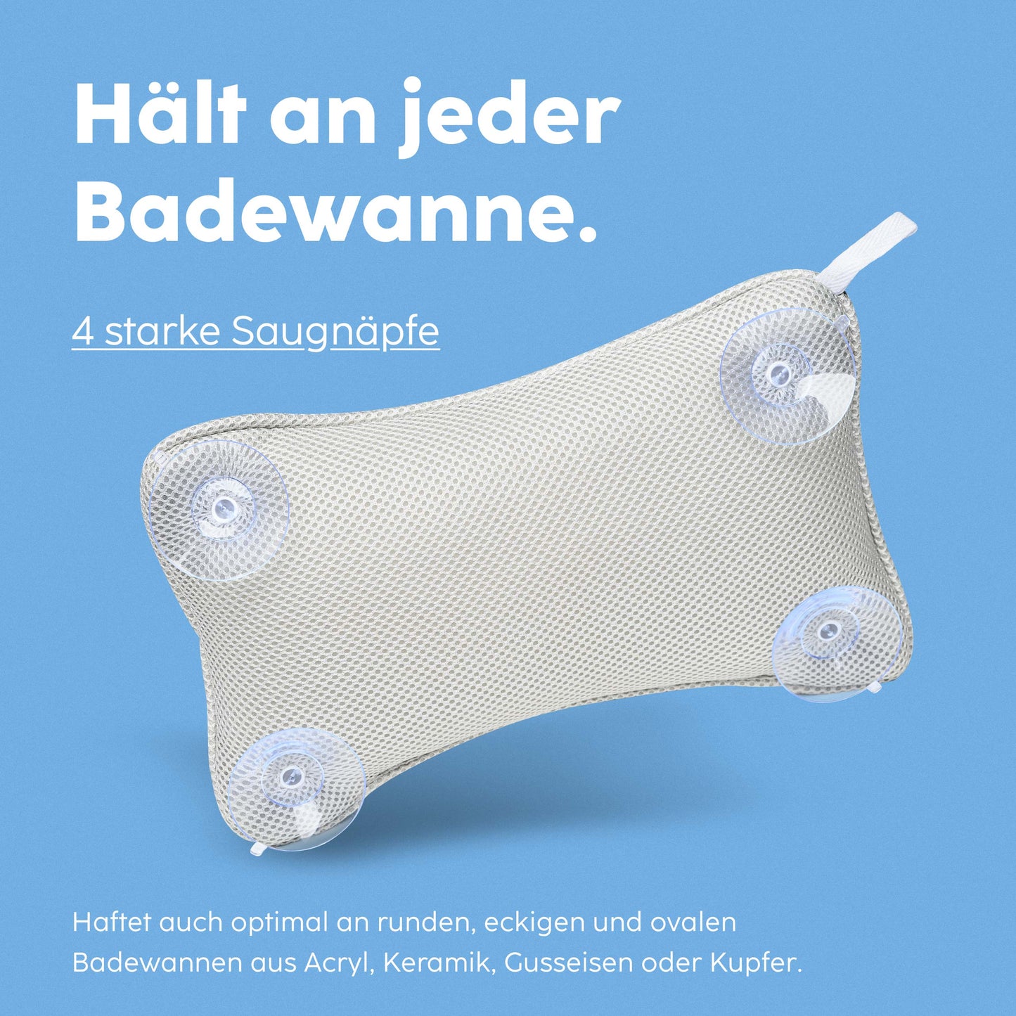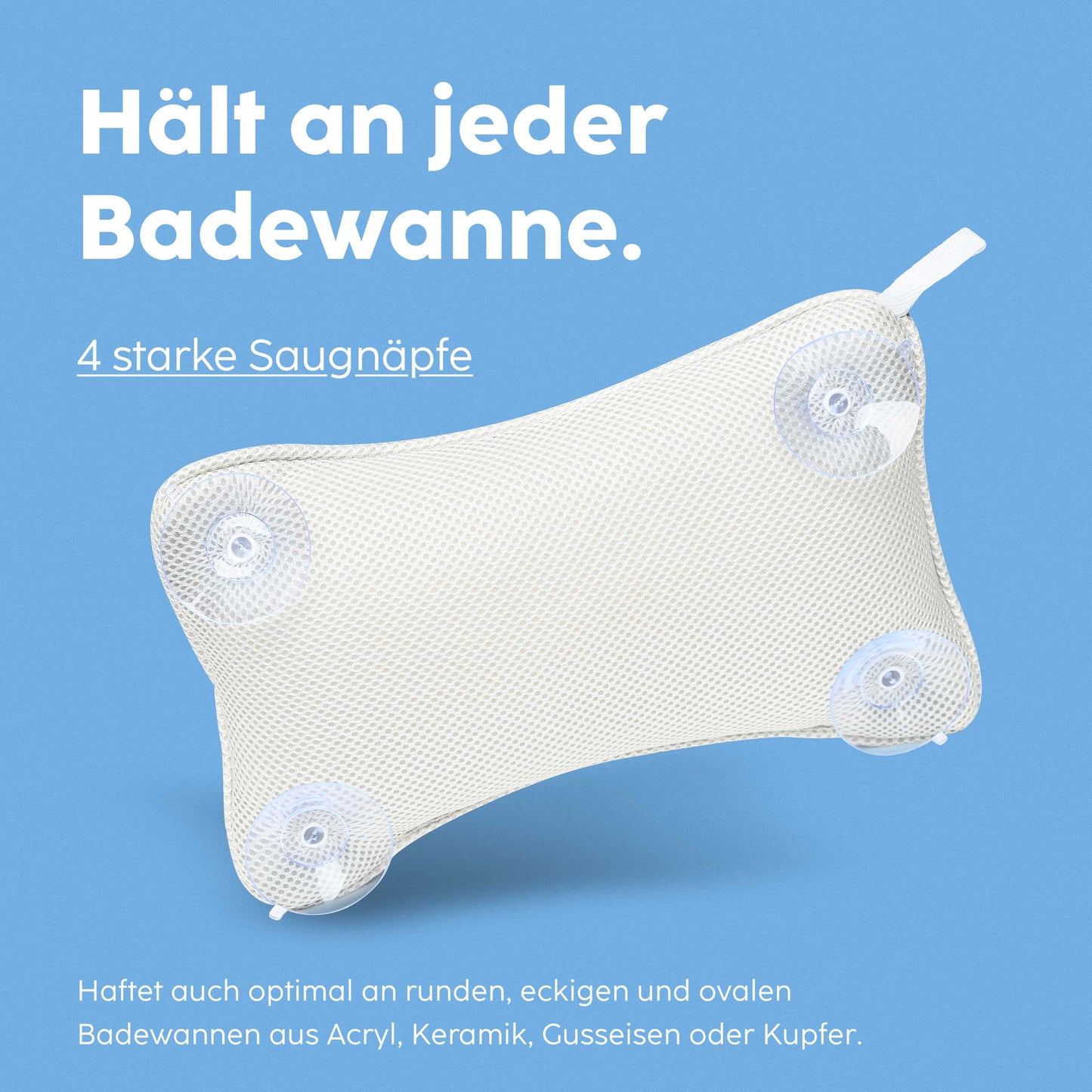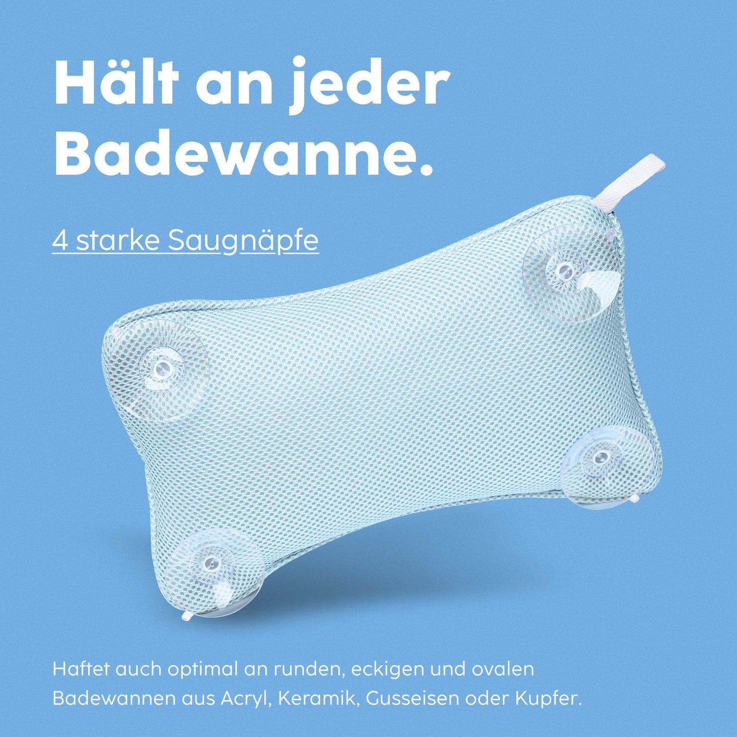 Unser kompaktes Badekissen besteht aus einem hautfreundlichen Material, das sich weich anfühlt und nicht kratzt. Die atmungsaktive Struktur verhindert unangenehme Gerüche und hält das Kissen hygienisch.