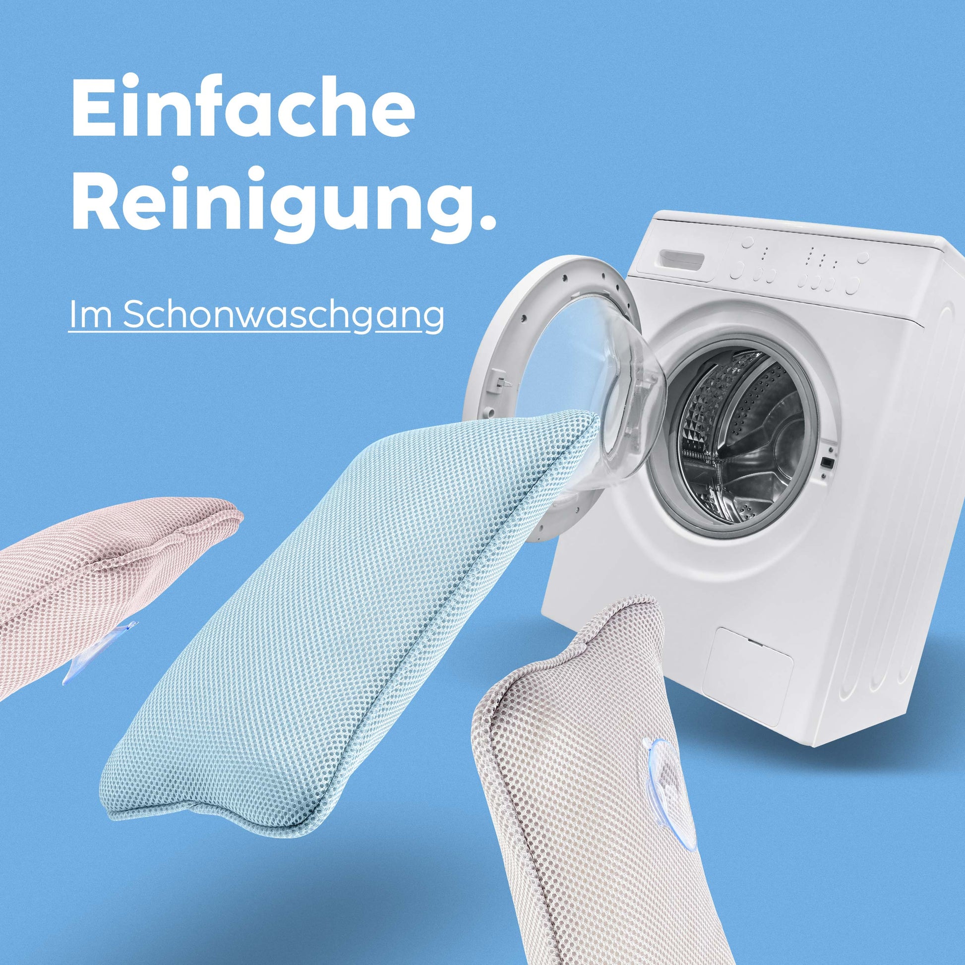 Das Badekissen Klein kann problemlos im Schonwaschgang gereinigt werden. So bleibt es hygienisch und einsatzbereit für das nächste entspannte Bad.