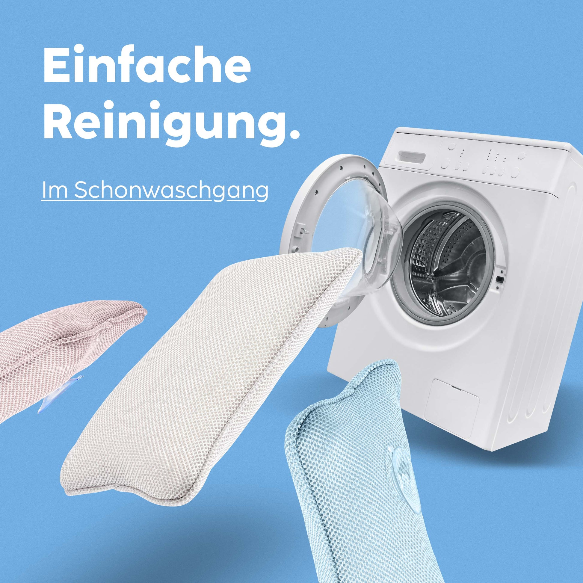 Ja, unser kompaktes Badewannenkissen kann problemlos in der Waschmaschine gereinigt werden. Nutzen Sie den Schonwaschgang bei 30 Grad und lassen Sie das handliche Badekissen gut trocknen, damit es hygienisch bleibt.