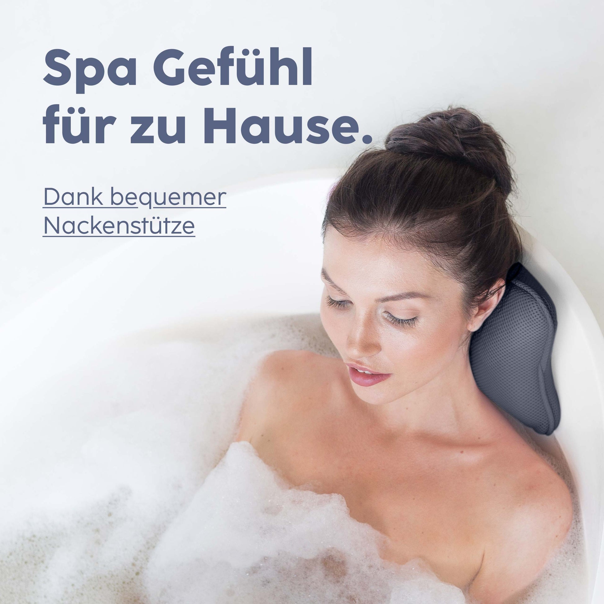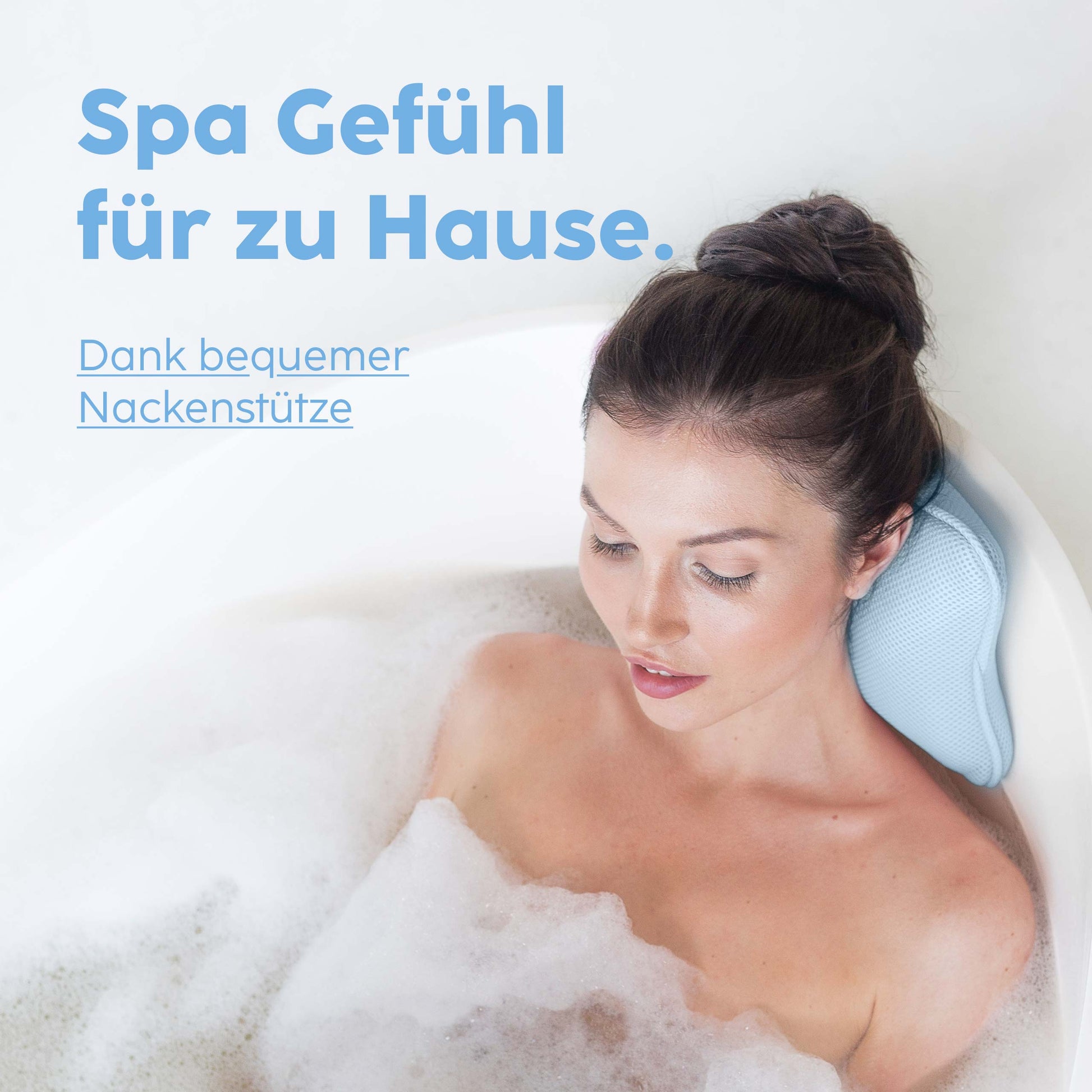 Trotz seines kompakten Formats sorgt die ergonomische Form für eine optimale Unterstützung von Kopf und Nacken – ideal für entspannte Badezeiten.