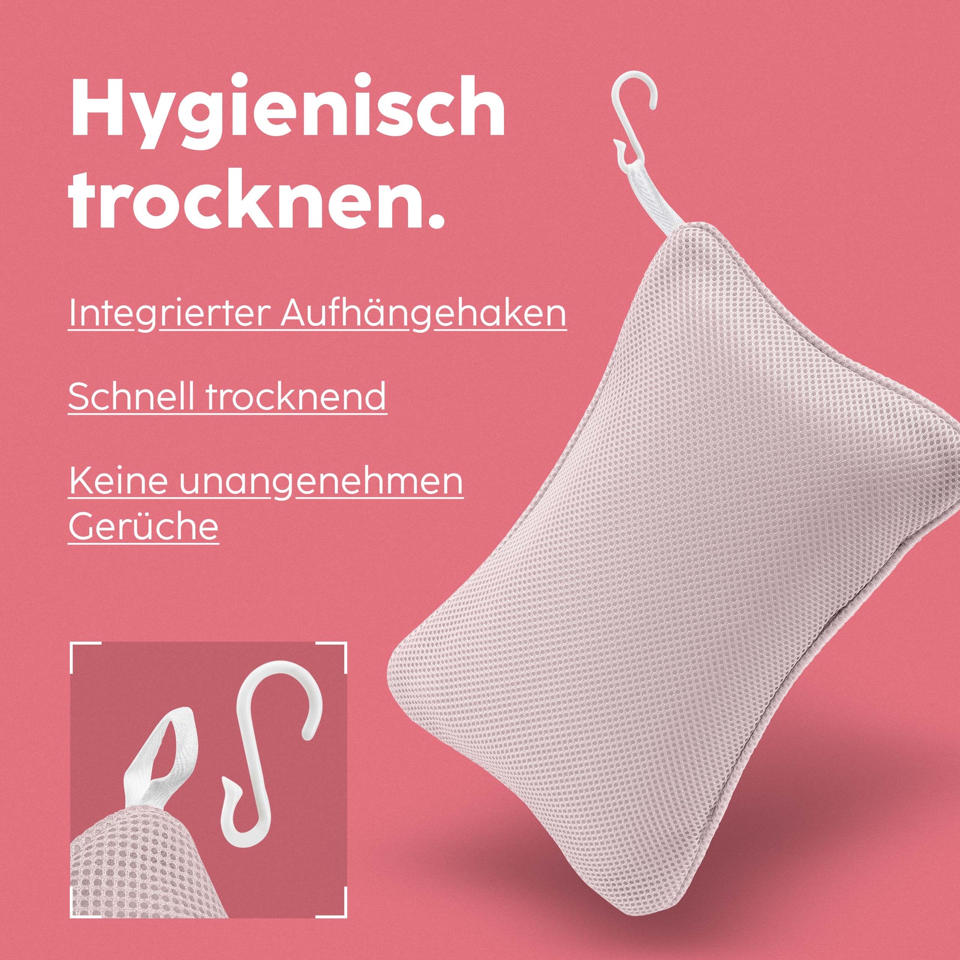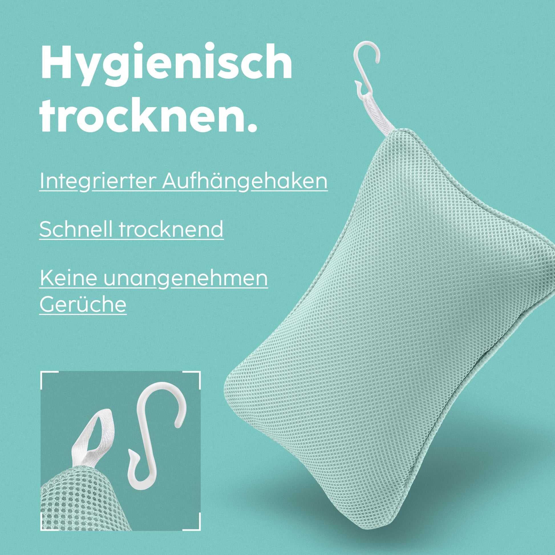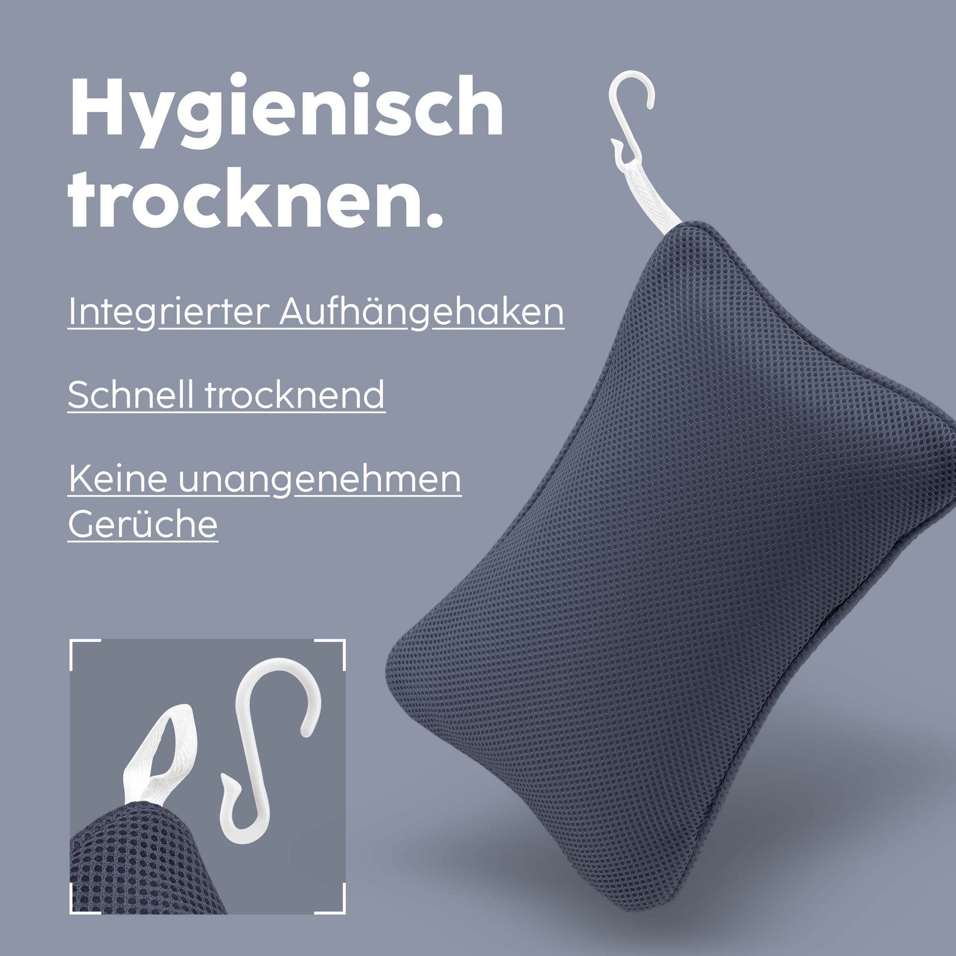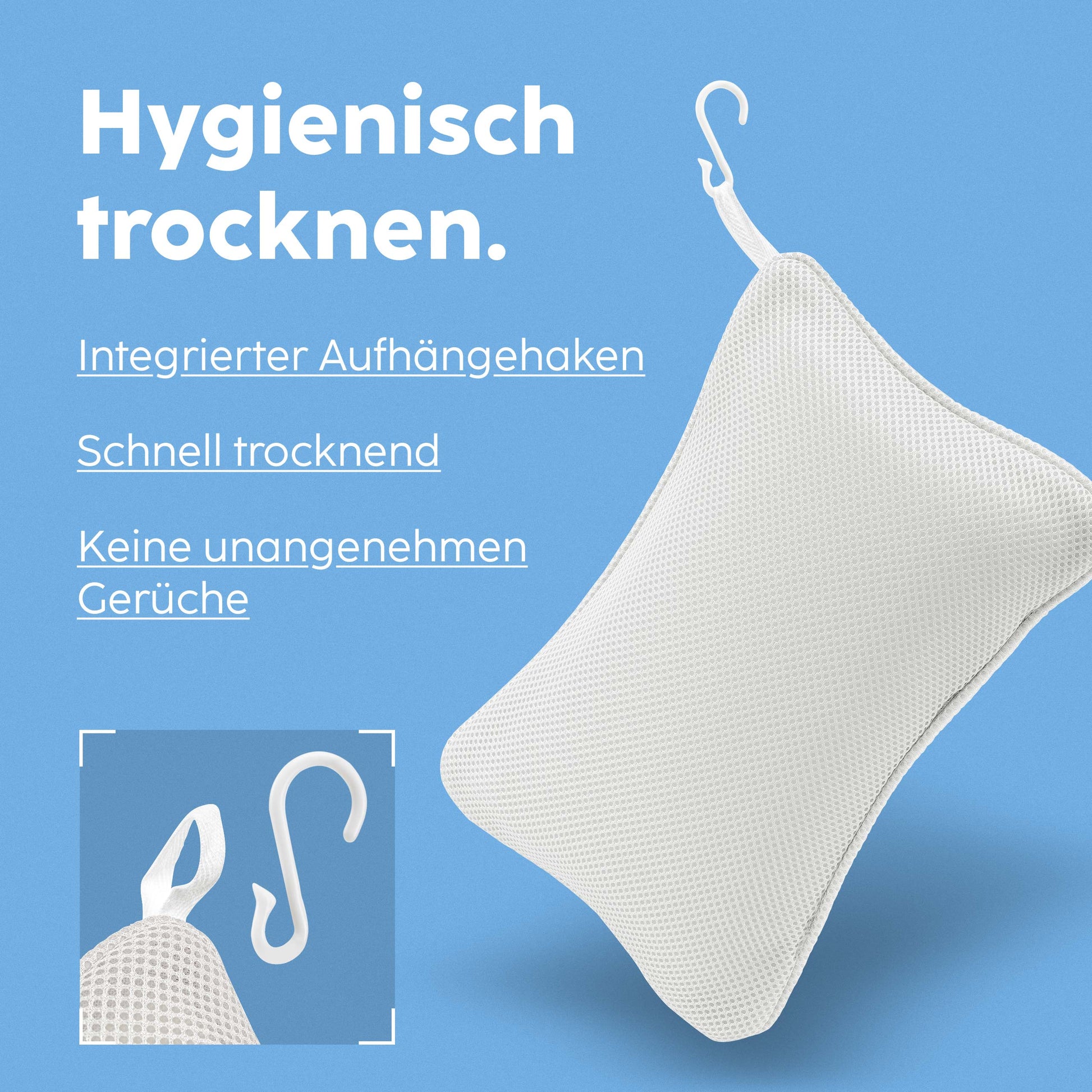 Ausgestattet mit einem praktischen Aufhängehaken, trocknet das kleine Badewannenkissen schnell und bleibt stets frisch – ideal für den regelmäßigen Einsatz.