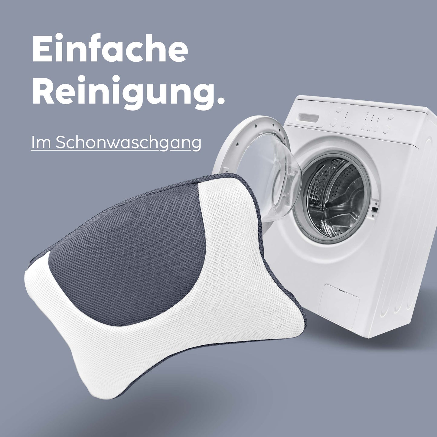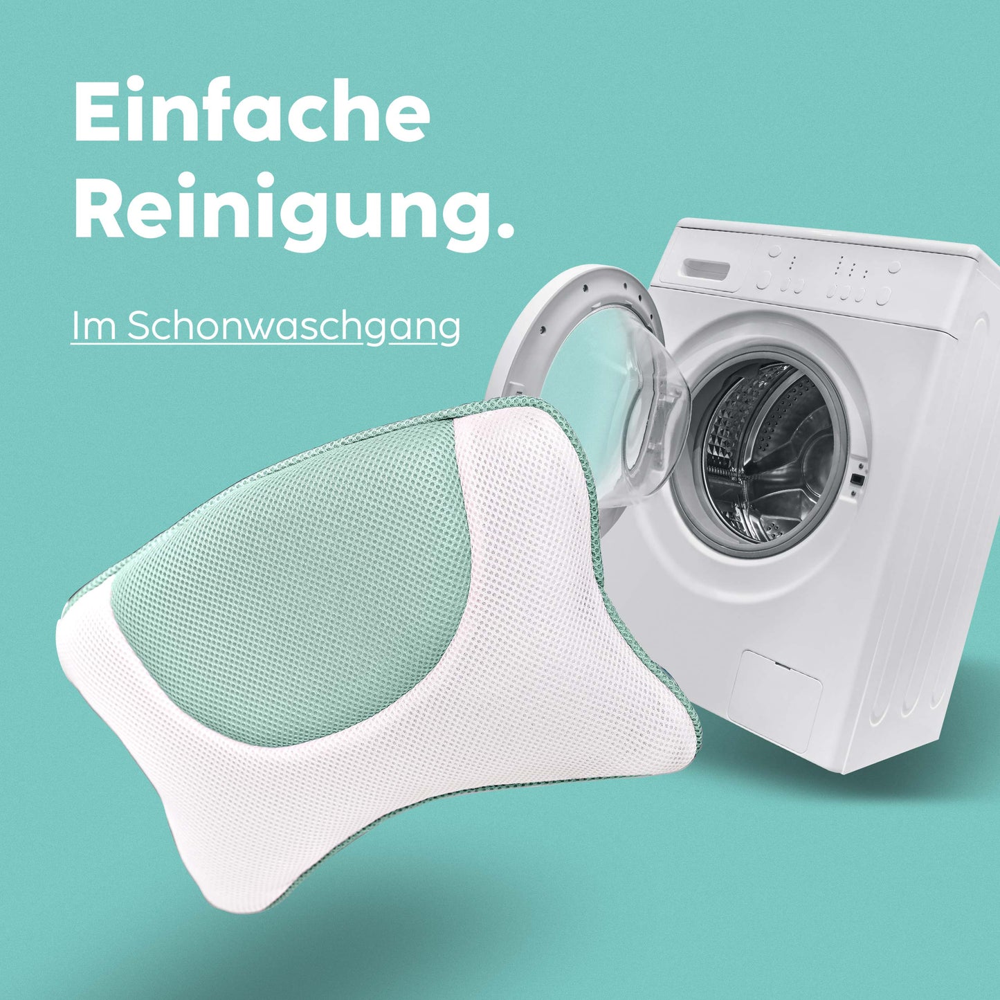 Für maximale Hygiene kann das mittlere Badekissen im Schonwaschgang gewaschen werden. Einfach reinigen, trocknen lassen und immer wieder genießen.