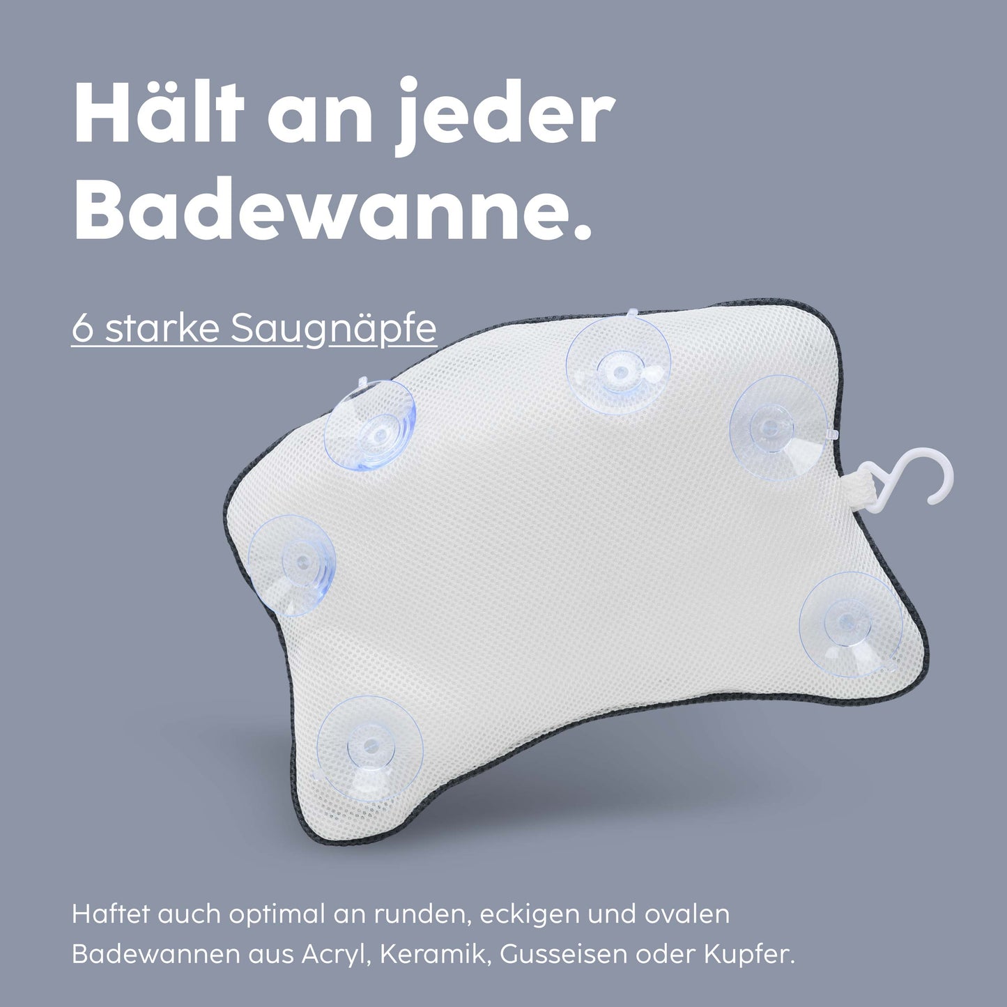Dank der ergonomischen Form und der weichen Nackenstütze sorgt das Kissen für die Badewanne mittel für ein komfortables Spa-Erlebnis bei jedem Bad.