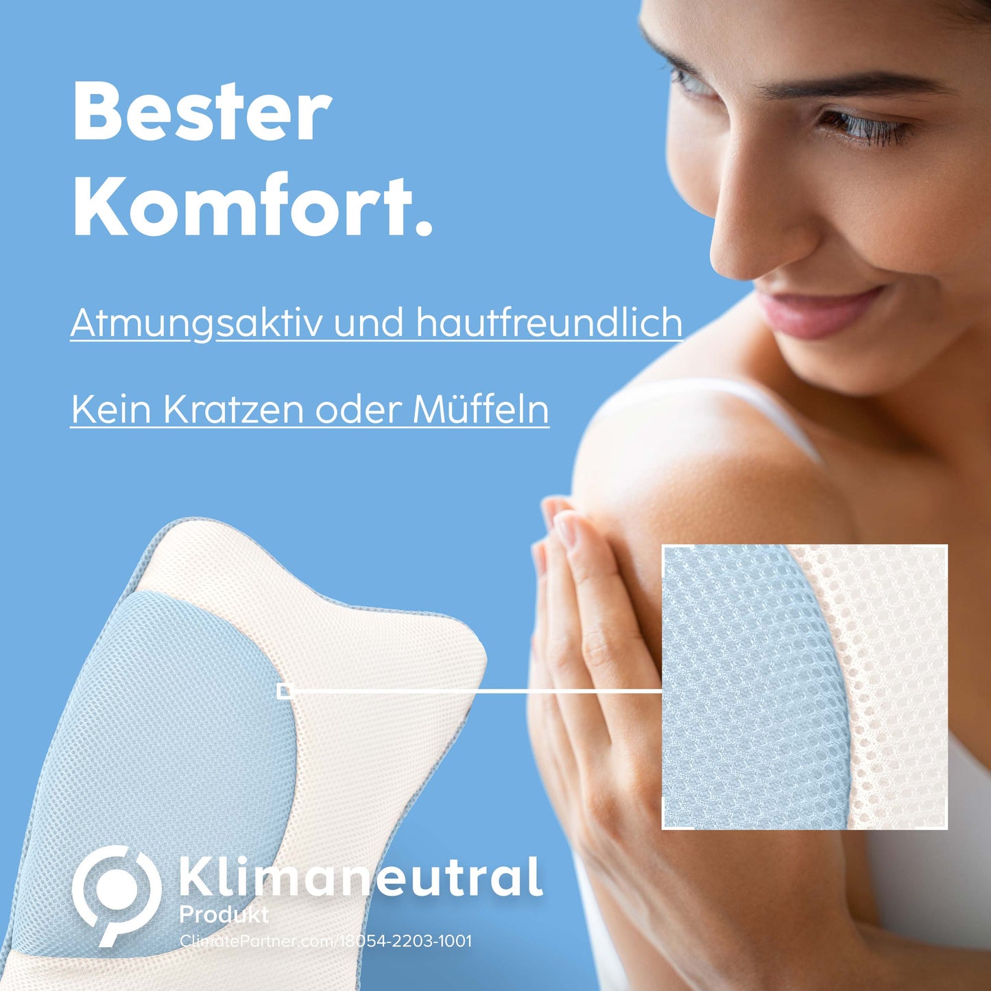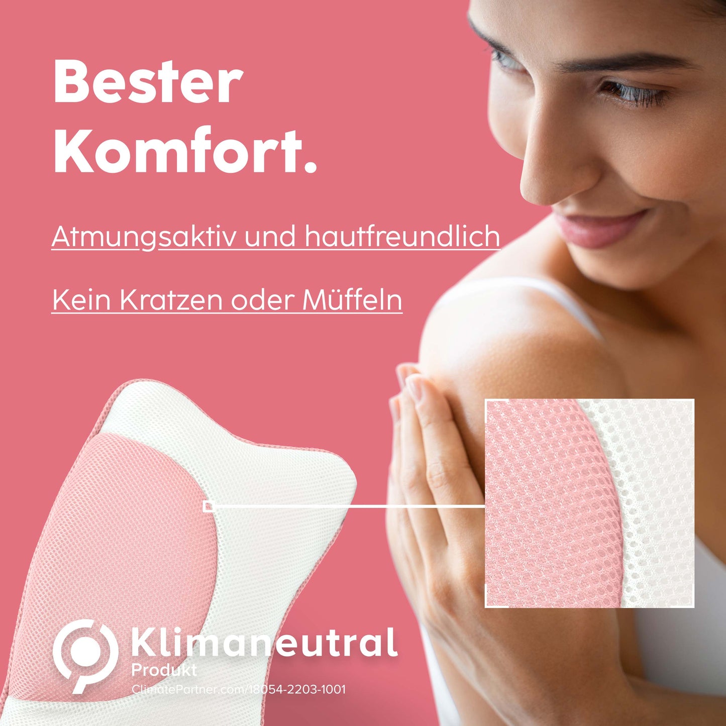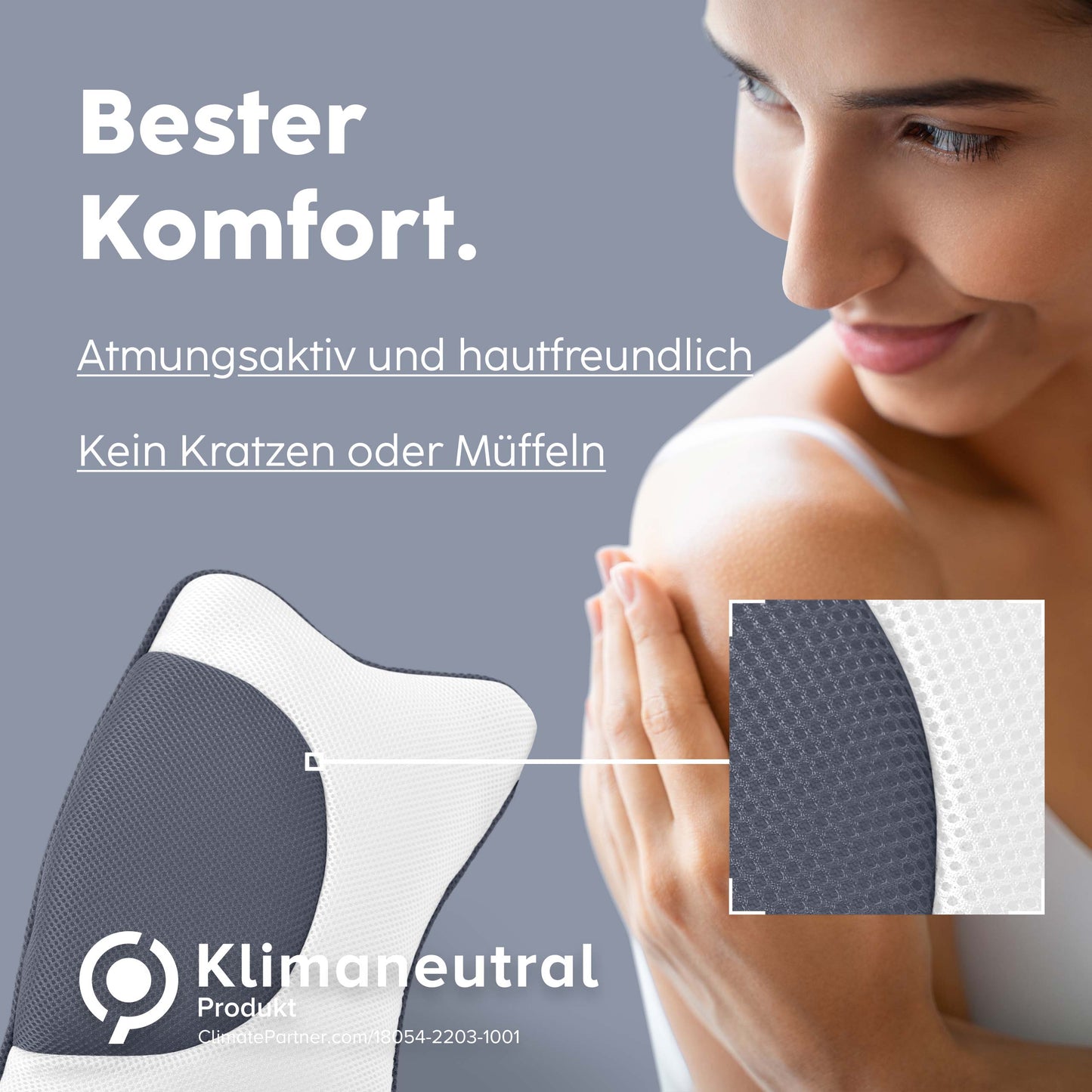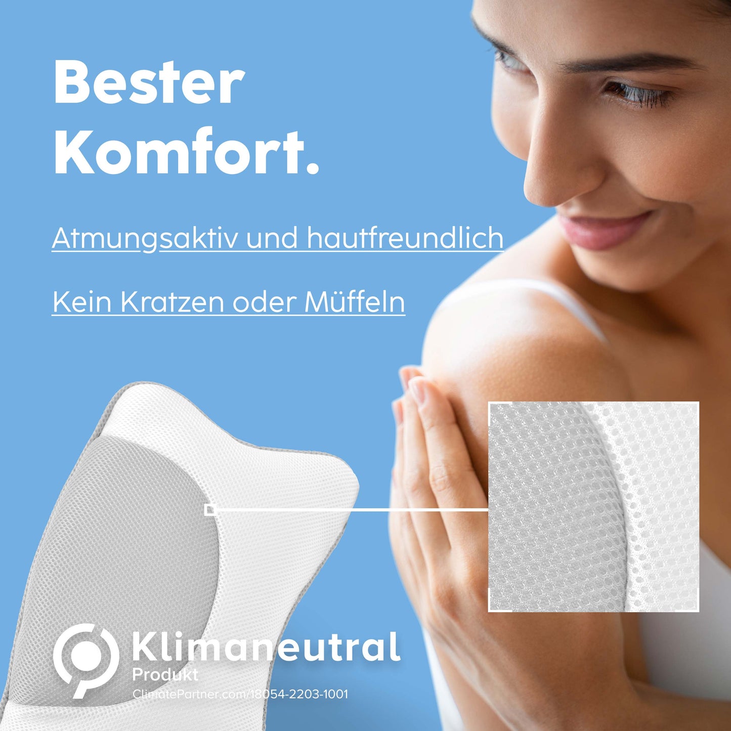 Sie sind sich nicht sicher, welche Größe die richtige für Sie ist? Das mittlere Badekissen bietet die ideale Balance zwischen Komfort und Kompaktheit. Wer eine noch platzsparendere Lösung bevorzugt, findet mit unserem kleinen Badewannenkissen eine handliche Alternative. Für diejenigen, die sich mehr Unterstützung wünschen, sorgt das große Badekissen für zusätzlichen Halt im Schulterbereich, während das extragroße Badewannenkissen mit seiner großzügigen Polsterung den gesamten Rücken verwöhnt.